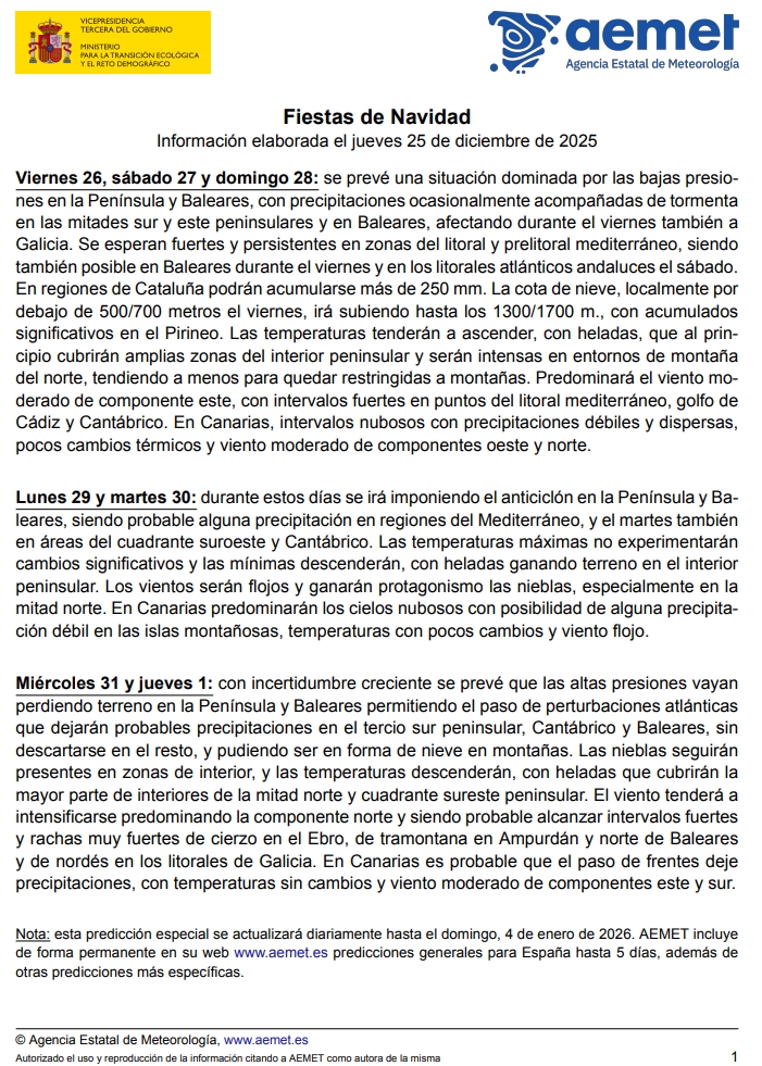 AEMET y otros organismos. Año 2025. (Notas en post 1)