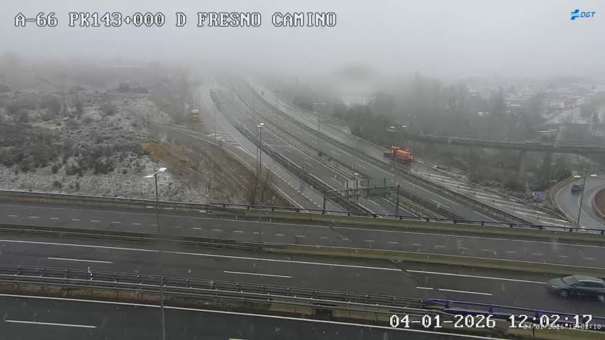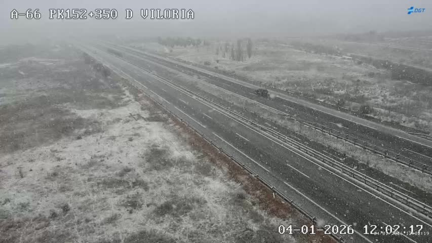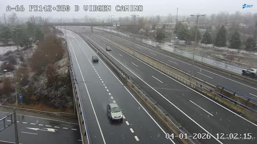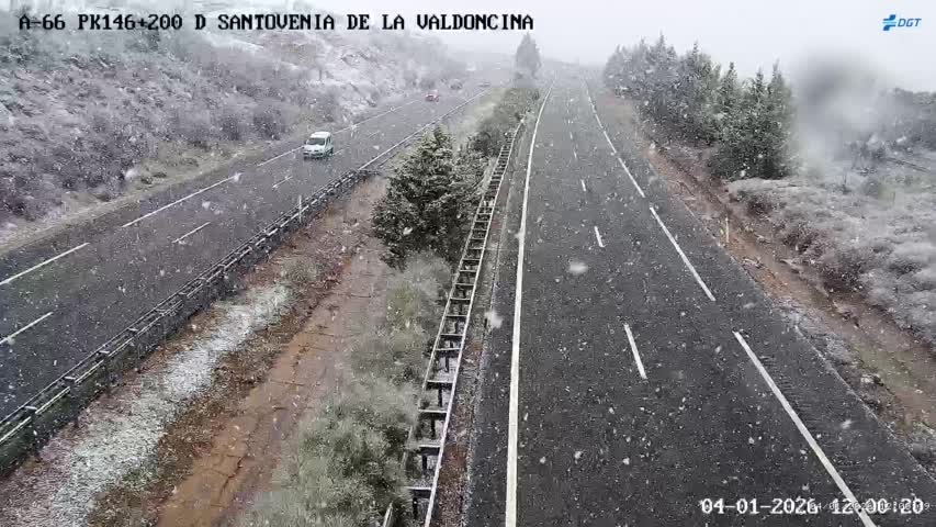 Viendo las cámaras de la DGT en la A66 nieva y cuaja ligeramente cerca de León, lo que no sé si lo hara en la ciudad.