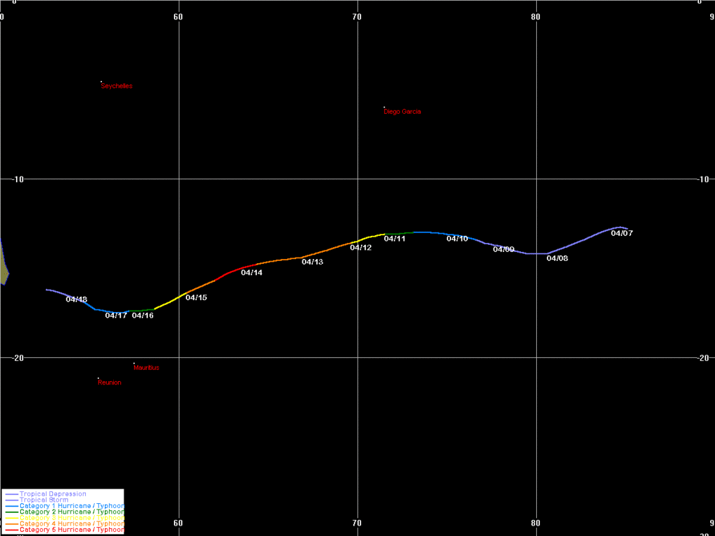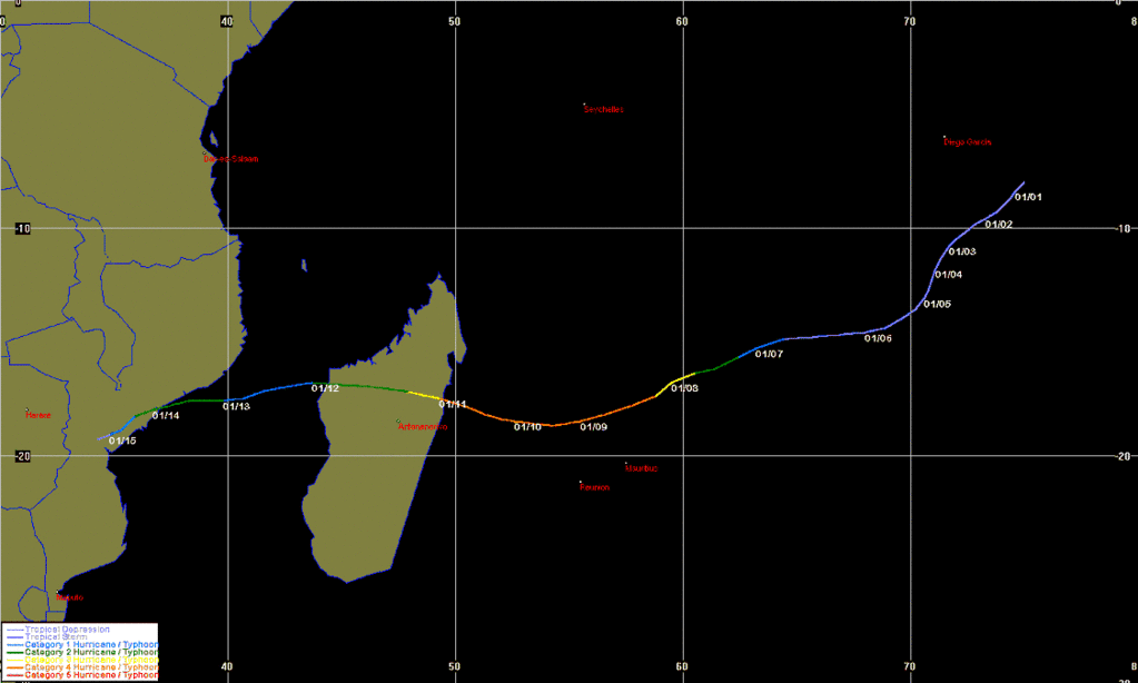 Ciclónes Históricos en el Hemisferio Sur desde el 1980 a la actualidad