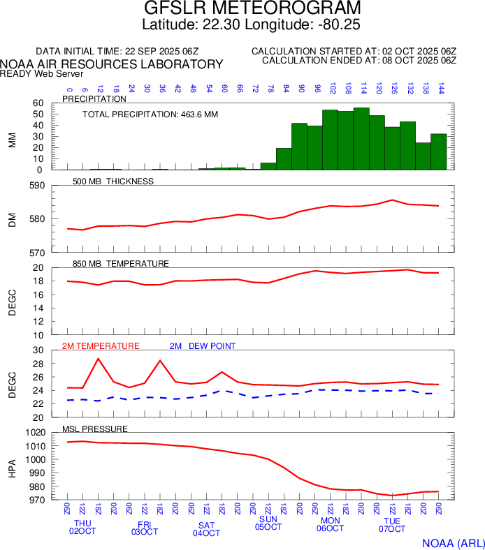 El meteograma es de mi pueblo, por ciento, no sería la primera vez que pasase por esas fechas, hace 62 años entre el 4 y el 8 de octubre del ´63 el Flora deambuló sobre el oriente Cubano, se llegaron a registrar totales de hasta 2500mm en el oriente de Cuba  :cold:  :cold:  :cold: