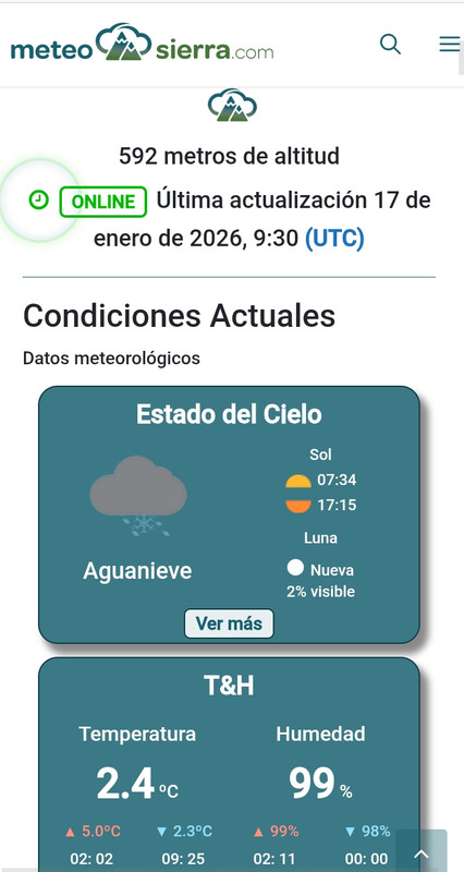 Lleva precipitando desde la 1,30h de forma débil a moderada, y desde las 9,30h se han transformado en nieve o aguanieve a unos 710msm, reccogiendo de momento 13,4mm.