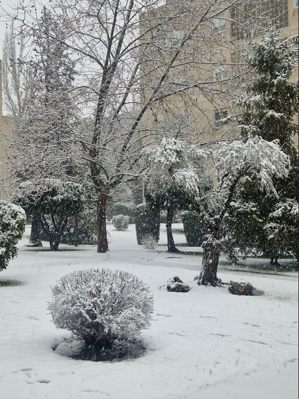 Parece que la cota de nieve está en medio de la capital, porque en mi barrio lleva nevando un buen rato pero en otras zonas más al sur no está nevando.