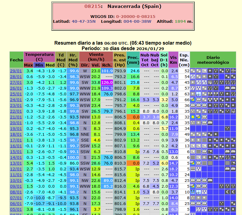 Navacerrada esta en 176.2mm en este mes de enero, ya por encima de la media.