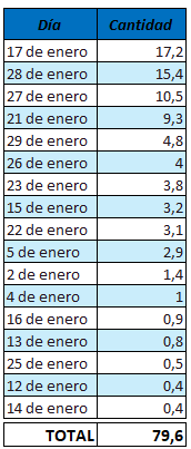 Días con precipitaciones en enero: 15/28