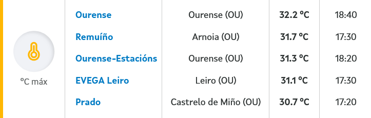 Actual, 21,4/ 24,2ºC (Seixalbo/ A Farixa), despejado.