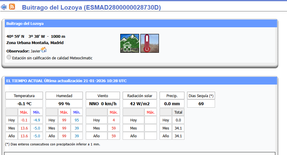 Ahora se registran 6,7ºC, 95%hr y 1000mb.