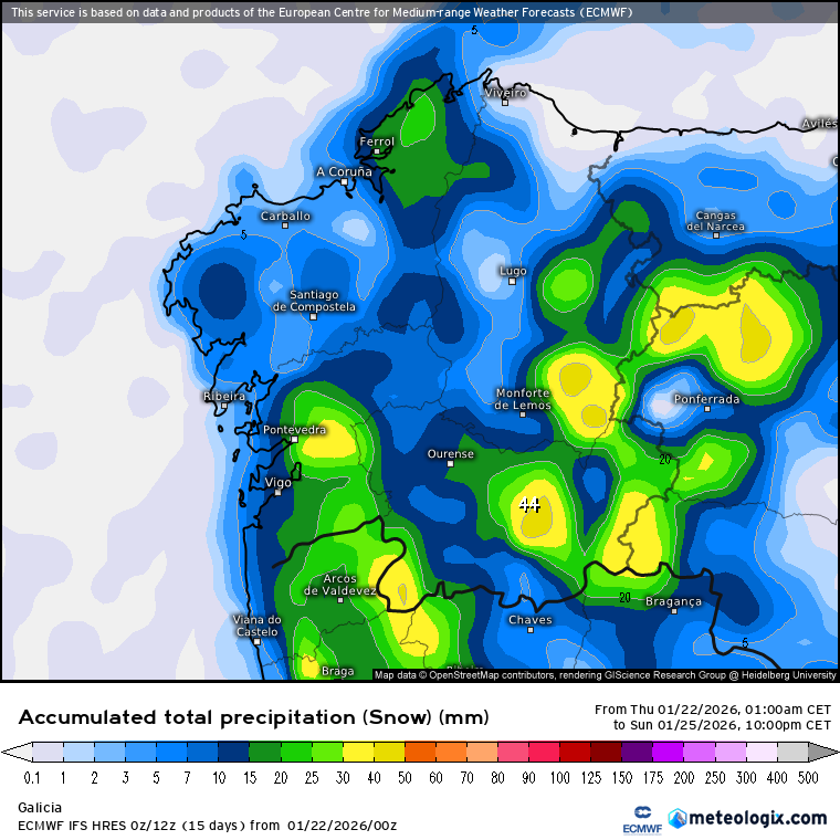 Último mensaje por Milibar - Ayer a las 23:15:46 PMEste es un buen mapa que ejemplariza a la perfección el efecto Foehn sobre las zonas bajas de la CAM cuando nos afectan los oestes o noroestes debido a la barrera del Sistema Central. En la última salida del europeo vemos este mapa de acumulados de nieve en mm (no espesores en el suelo) hasta el domingo. Se observa perfectamente como en las zonas llanas a sotavento del Sistema Central es donde menores acumulados se observan en general, mientras zonas que están fuera de la influencia de esa barrera del Sistema Central o donde les afecta menos esa barrera los acumulados serían algo mayores y mucha más acumulaciones obviamente a barlovento.