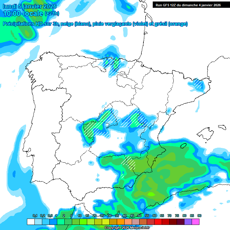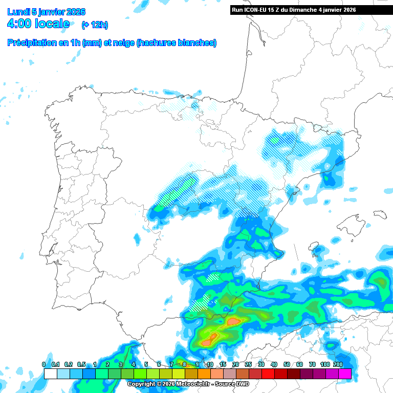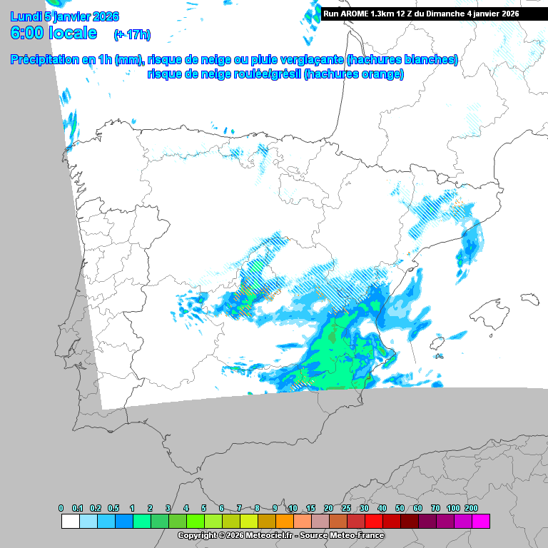 Lo único previsto en cambio, son chubascos ocasionales, con cota cada vez más baja (300/400/500 respectivamente, de Oriente a Occidente).