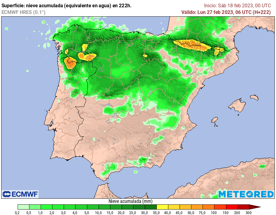 La aemet acaba de sacar los mapas de anomalía de precipitación del 20 al 27 de febrero ,lloverá más de lo normal en el noroeste,,lo normal en el resto y mucho menos de lo normal en el sureste,,temperatura más baja de lo normal en el noroeste ,normal en el resto ,,también comenta que una entrada  de latitudes polares entrará el martes miércoles por el Noroeste y en cuanto a nevadas ponía que había incertidumbre pero no se descarta en cotas bajas ... parece que cobra fuerza la opción del europeo aunque aemet solo usa este...