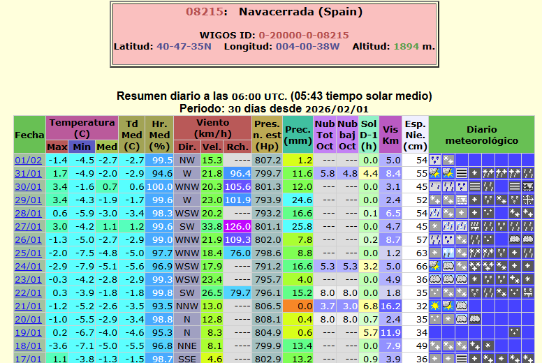 Puerto de Navacerrada 1892msnm 3.3º (Aemet)