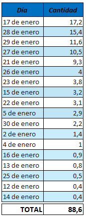 Enero finalmente cerro con 88.6mm y a pesar de la percepción terminó por encima de la media 6.1º (+0.4º)