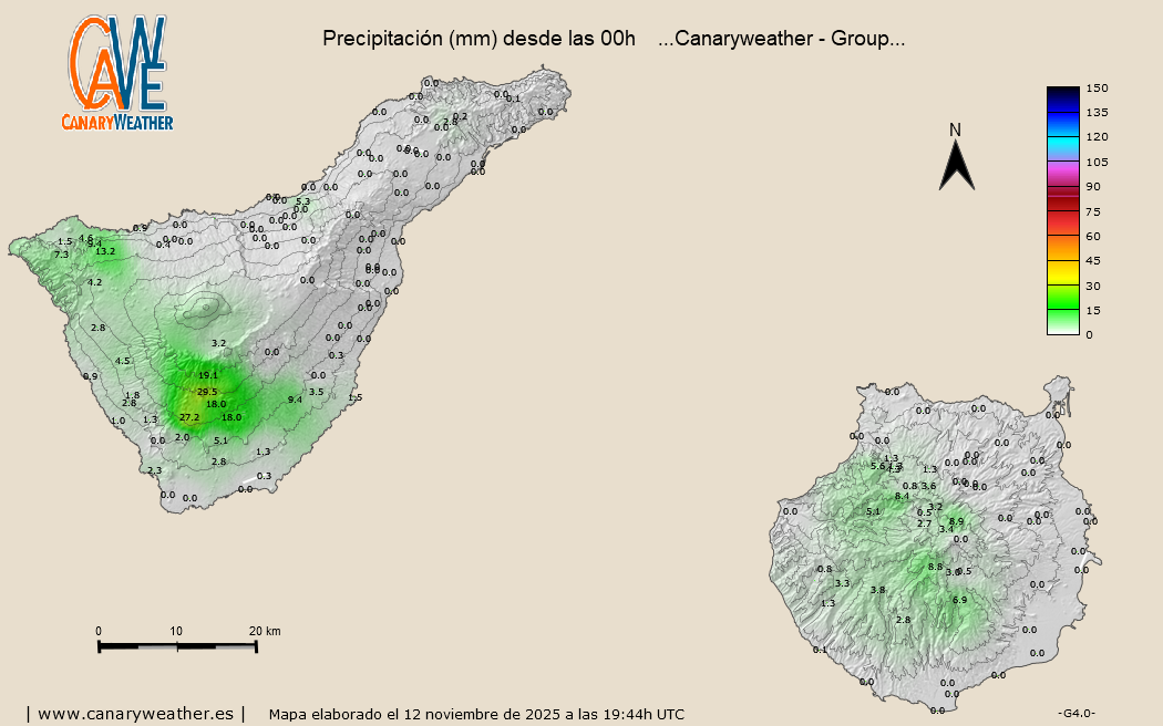 Me llama la atención que en TF haya llovido más en la comarca Acentejo que el en SE. Y que en Guia de Isora haya llovido poco, quizás apantallado por La Gomera ¿?