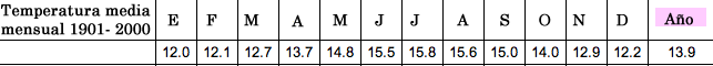 La temperatura media global terrestre anual del siglo XX (1901-2000) fue de 13,9 ºC.
