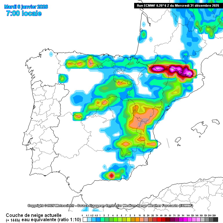Mientras el GFS indica espesores destacados en zonas llanas en numerosos puntos, el IFS con esa disposición de la borrasca todo sería mucho mas light, tanto en extensión de nieve como en espesores.