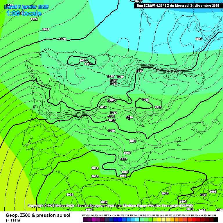 Otros modelos también lo contemplan. El resultado es una masa en el Cantábrico, o cercanías, aún queda tiempo, bolsa en altura bastante fría (puede que se rebaje, puede que no) a 500 hPa, con su carga de humedad. ECMWF, lunes 5: