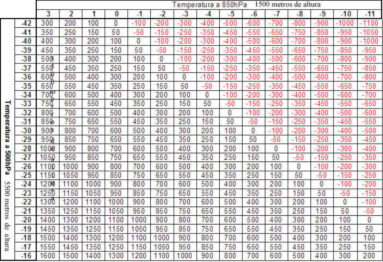 Con la segunda tabla, que es más comedida, tras aplicarle -200 metros por la altura geopotencial, la cota estaría rondando los 200-300 metros.