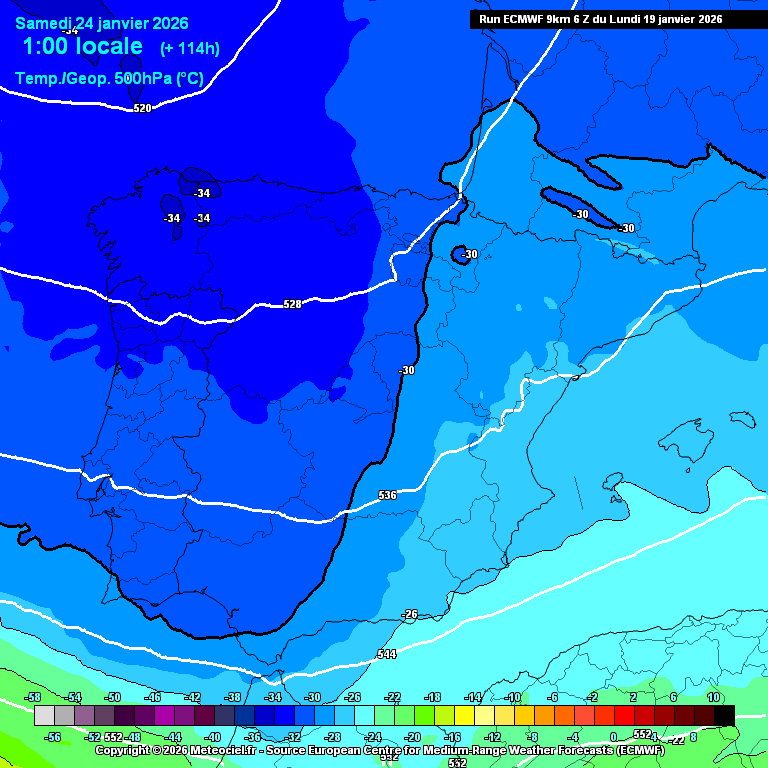 - Y aquí está la clave. Geopotenciales. 130 dam a 850 hPa y 528 dam a 500 hPa ve ese modelo para ese sábado pasando por Galicia