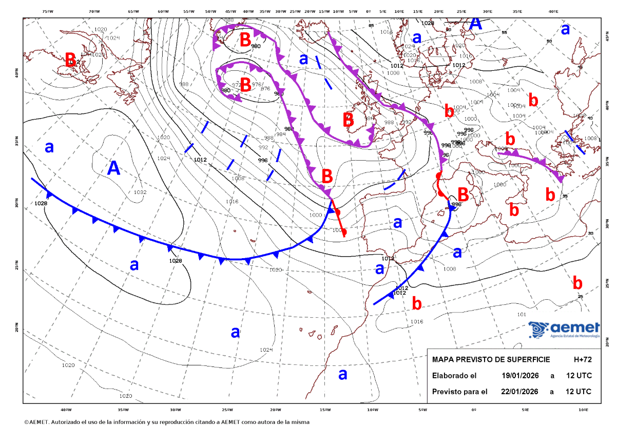 Precisamente por este tipo de situaciones son por las que uno se engancha a la meteorología. Ese poder que tiene en ocasiones para afectar de manera muy intensa sobre los lugares y los seres vivos que viven en ellos. No es frecuente que coincida en el tiempo esta configuración sobre nuestra posición, temporal mediterráneo de primera categoría con temporal atlántico de primera categoría.