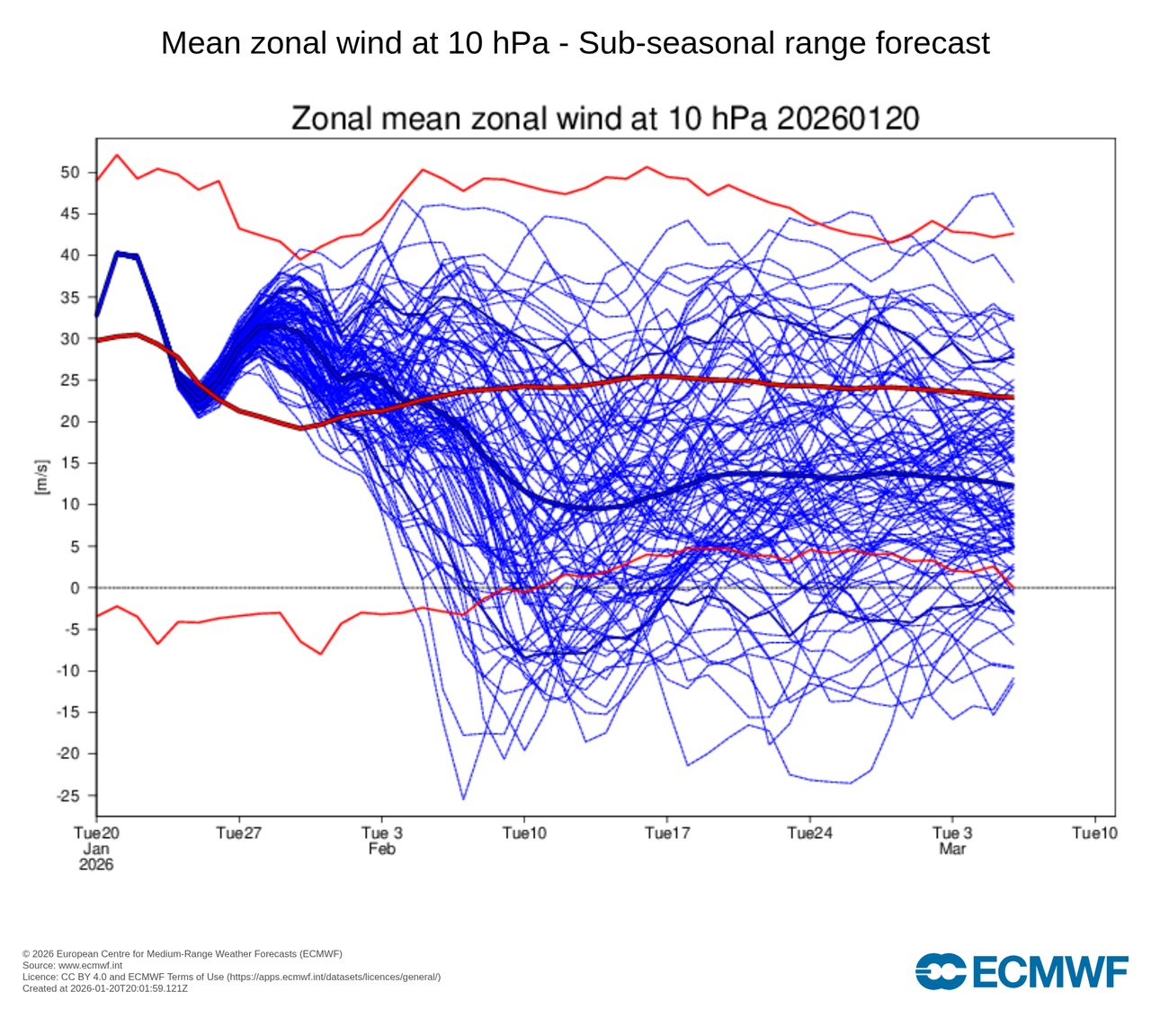 Es muy difícil intentar profundizar y llegar a alguna conclusión fiable de por dónde pueden ir los tiros mirando en la estratosfera o en las teleconexiones porque siguen mostrándonos en el extra largo plazo un vórtice estratosférico tocado, que no hundido, alargándose e incluso con posibilidad dividirse en 2, pero el viento zonal a 10 hPa en el paralelo 60N no indica en ningún caso reversión de viento zonal ni por asomo, es decir, sin posibilidades de CSE, de momento al menos, que definitivamente rompiera la baraja. Si que se aprecia ese debilitamiento en la primera decena del mes de febrero bajando por debajo de su media climática ese viento zonal a 10 hPa que no se si se traducirá en algo concreto para nuestra ubicación a partir de que ocurra ese debilitamiento si es que llega a producirse porque hablamos de plazos demasiado largos como para dar demasiada credibilidad a lo que nos muestra el modelo de rango extendido en una salida concreta. Si que es verdad que viendo sucesivas salidas del modelo de rango extendido en relación a este gráfico vemos cómo ha ido aumentando ese debilitamiento del viento zonal a 10 hPa en la primera decena del mes de febrero. Si lo sigue manteniendo ese debilitamiento y aumentando incluso es cuando habría que empezarle a dar credibilidad a esa tendencia. De momento es una posibilidad sin más.