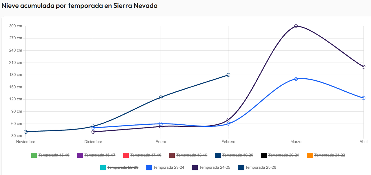 Y ojo, con temperaturas lo suficientemente contenidas para no aniquilar la nieve en las cotas más altas de los sistemas montañosos en los próximos 10 días probablemente. Esto puede provocar que Sierra Nevada acabe acumulando unos espesores máximos (en las cotas más altas) más propios de marzo por allí que es el momento más propicio en esa ubicación para acumular más centímetros. Que a primeros de febrero puedan superar muy probablemente los 2 metros en cotas más altas, y ya veremos si se acercan a los 3 no se ve todos los años. Los modelos dan para que en cotas de 3000 metros todo lo que caiga por la zona en los próximos 10 días sean en forma de nieve y se prevén entre 175-200 mm o incluso algo más en esa zona según el modelo europeo o el JMA, lo que supondría poder llegar a los 3 metros en zonas altas antes de la compactación con el paso de los días.