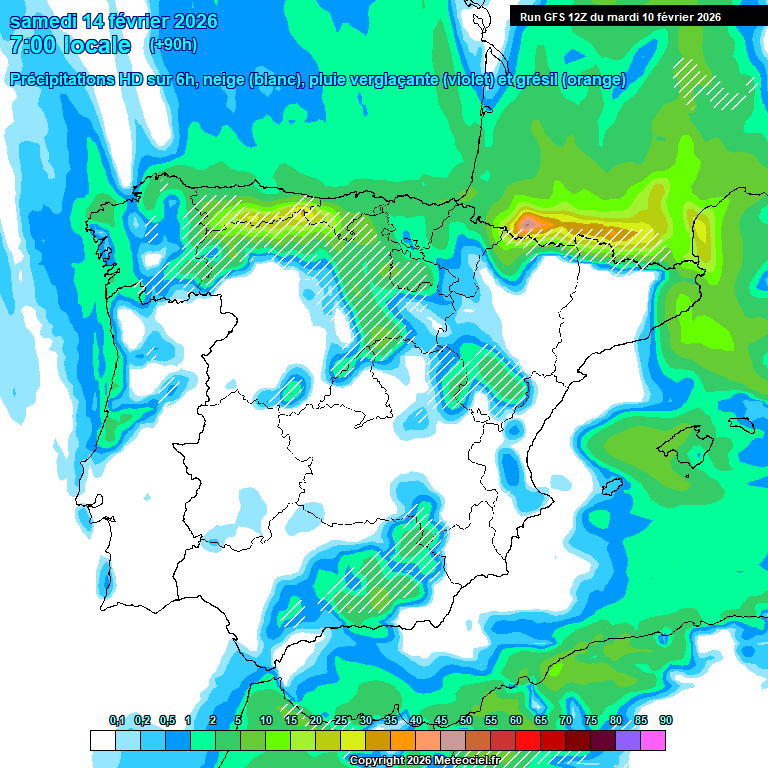 A la espera ahora de mesoescalares, para ver exáctamente cuánto, cómo y dónde va a nevar. Es una componente que nos beneficia y que no hemos tenido prácticamente en todo el invierno, salvo en Reyes. De mantenerse la configuración, además de la nieve, podemos esperar lluvia intensa, viento y sensación térmica bastante por debajo del termómetro, granizadas, alguna tormenta, y desplomes de cota de nieve en varias zonas.