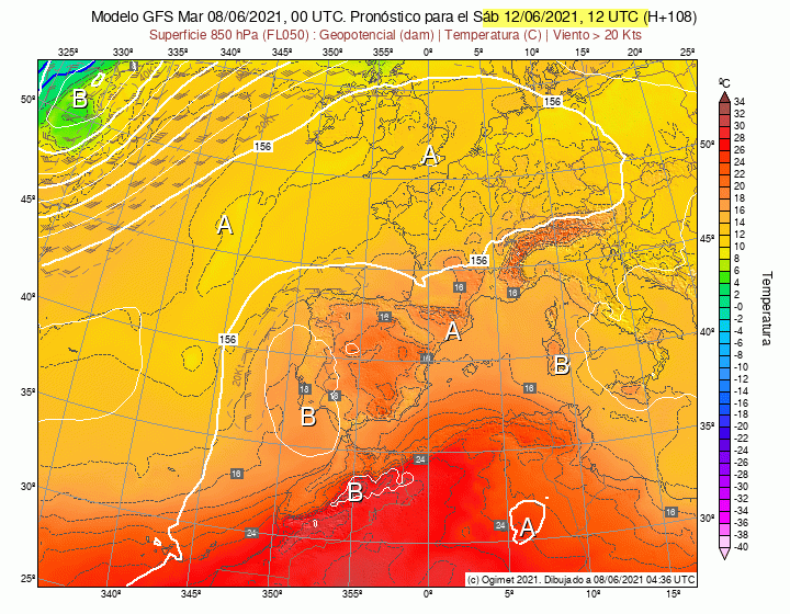 Una nueva vaguada parece que nos afectara al final de semana, si tenemos en cuenta que vamos a ir acumulando horas de calor a lo largo de la semana, podemos esperar un inicio del nuevo episodio algo movido en cuanto a gradiente termico vertical, por esa energia disponible inicialmente en capas bajas y entrada de aire frio en capas altas.