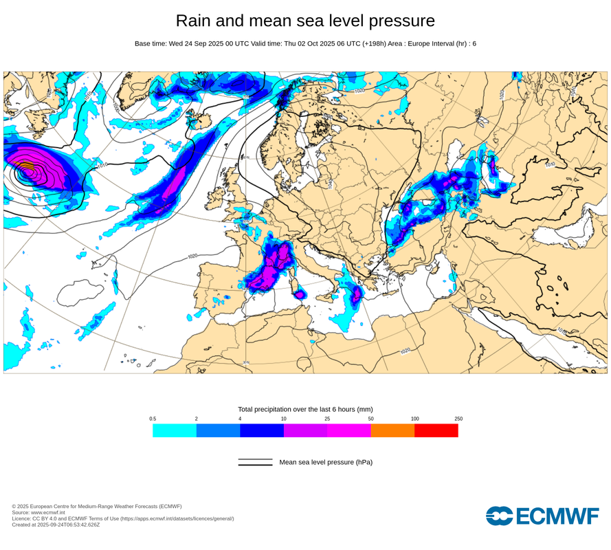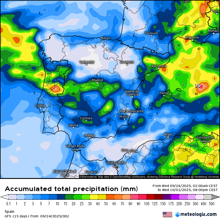 Gabrielle nos puede hacer perder el foco y dejar de mirar otras zonas peninsulares donde podría llover más la semana que viene por motivos bien distintos a esa depresión extra-tropical. Aunque hablamos de plazos muy largos, tras la llegada de Gabrielle se podría colar algo de aire frío por Francia a partir del martes-miércoles próximo e inestabilizar al menos el cuadrante noreste peninsular. Pero para eso queda una eternidad estando ya inmersos en pleno otoño con lo que eso conlleva en términos de vaivenes modelísticos salida tras salida.