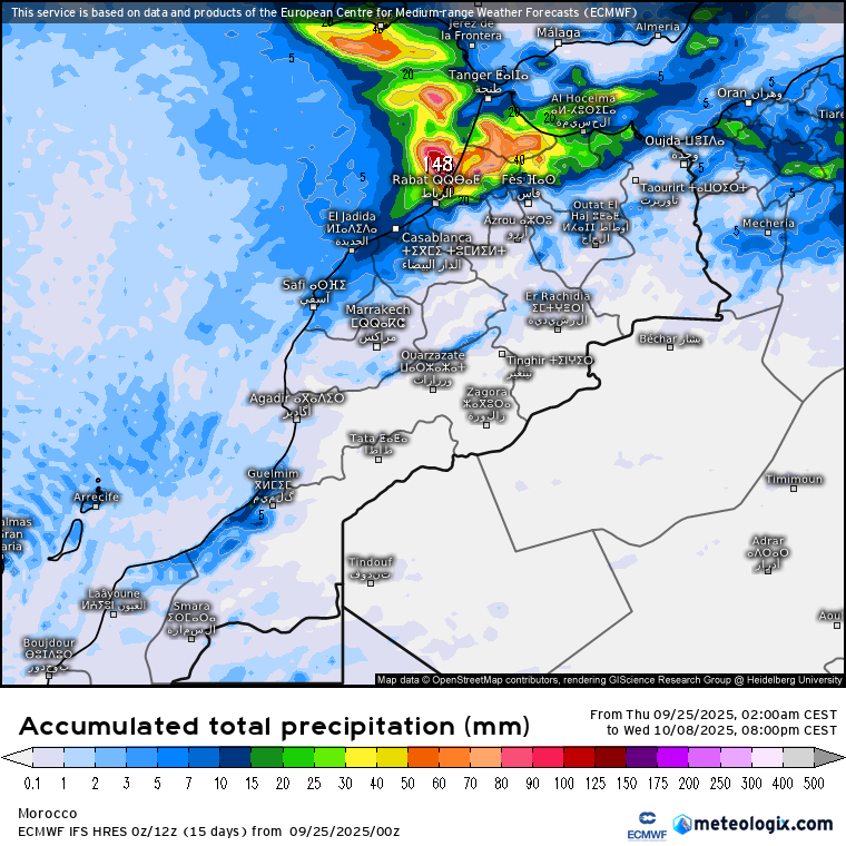 Ejemplo de lo que estoy comentando lo tenemos con los acumulados de precipitación que nos dejaría el ex-huracán Gabrielle cuando llegue a nuestra ubicación ya muy desgastado como siempre se ha pronosticado. En esa distribución de precipitaciones es donde vemos las limitaciones de los modelos. Es imposible saber con 4 días de antelación si esa baja en uno de sus giros ciclónicos va acabar penetrando algún brazo húmedo tierra adentro en el cuadrante suroeste peninsular o la mayoría de la precipitación que le acompaña acabará cayendo en el mar, en Marruecos o incluso en Extremadura. Es una sutileza realmente a nivel escalar (las distancias son pequeñas), pero que tiene enorme importancia a nivel de pronósticos porque no es lo mismo para nosotros que los 148 mm que el europeo pronostica en estos momentos para Marruecos acaben cayendo en Cádiz, o acaben cayendo 133 por Extremadura como dice el GFS, o todo acabe en el mar como nos lo pinta el modelo ACCESS-G y nadie a día de hoy puede decir qué opción de estas 3 que he puesto como ejemplo es la más plausible.
