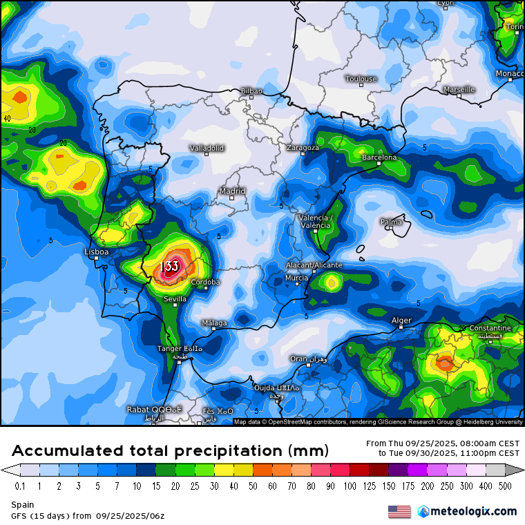La gran mayoría de los modelos va coincidiendo en que Gabrielle entrará algo más bajo de latitud, desde el entorno Lisboa hasta el Golfo de Cádiz. Dos lugares óptimos para las ábregas precipitaciones, a no ser que mecanismos de ruptura se cuelen, como así se muestra, entre medias.