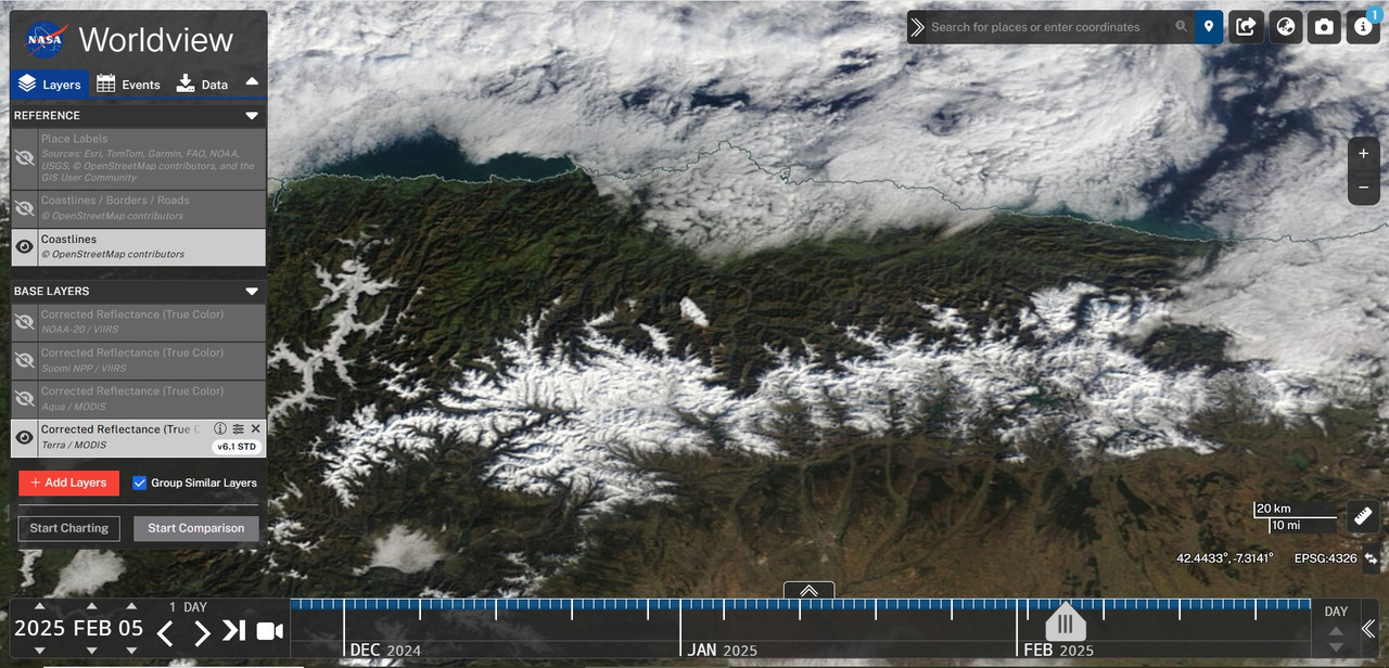 Ayer a la misma altitud más frio en los pirineos que en los Alpes.