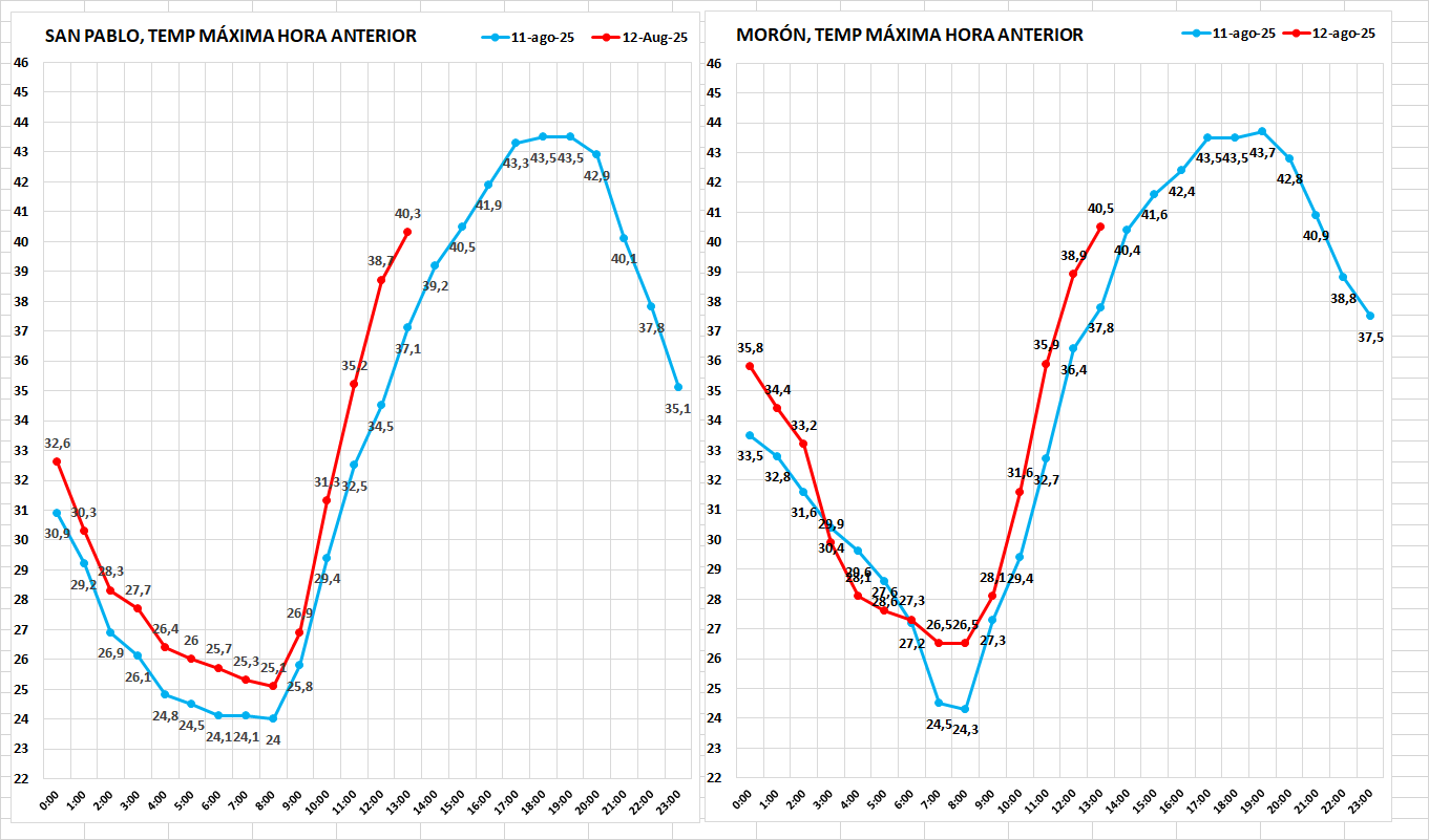 Pues solo 1º mas que ayer (Harmonie decia 1 o 2), asi que maximas discretas respecto a los tops anuales y por detras de las del mencionado mitico 11ago12 (muy por detras en el caso de San Pablo)... la alegria la ha dado Tablada y sus pedazo 45'2... :babeo: