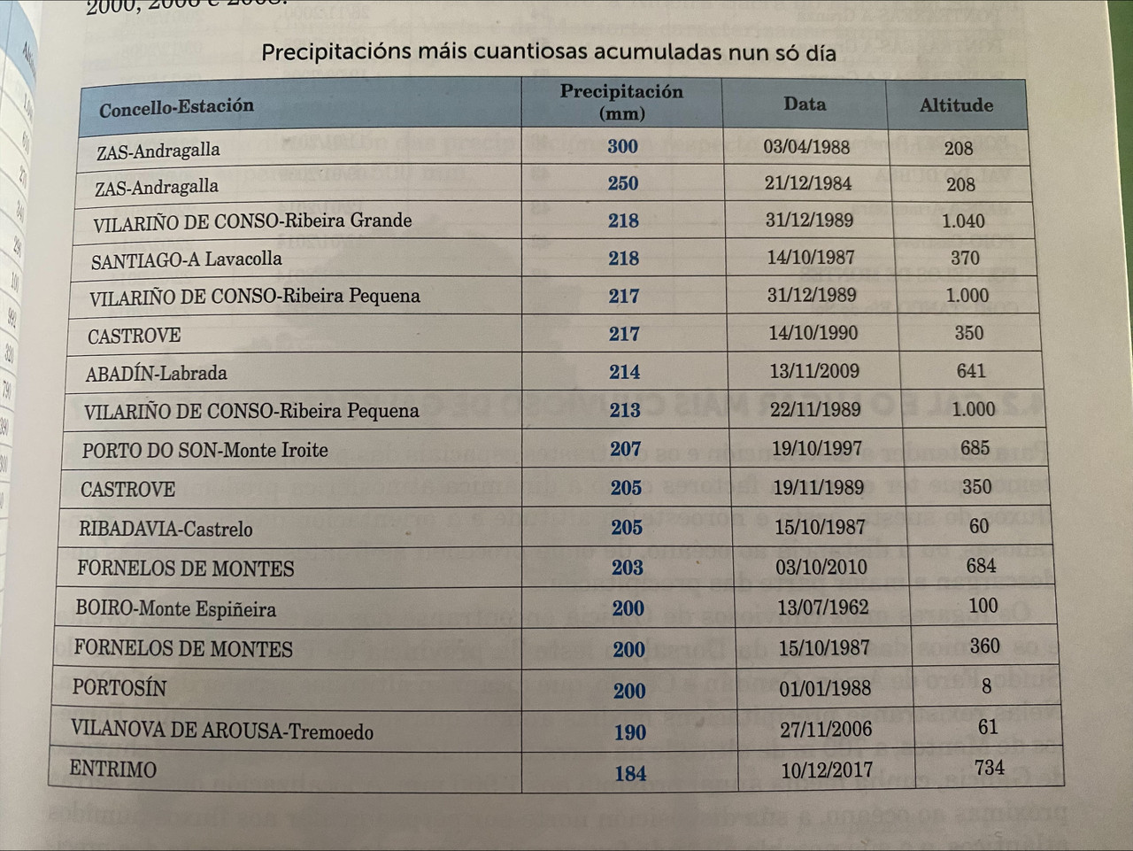 Incluso en los orinales típicos como Fornelos de Montes, Rois Casas de Porto ,Muralla ,Beariz, A lama,etc ya les cuesta mucho llegar a 200litros en 24h y en situaciones top, pero de ahí no pasan. Y en los observatorios principales de la franja Atlántica llegar a 100 o superarlo ya es un datazo,  destaca Santiago por la situación excepcional de oct 1987 con 218litros..