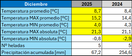 Otro año también con pocas heladas, y aún suerte de los dos días de noviembre, o hubiéramos igualado las 3 raquíticas heladas que tuvimos el año 2024.