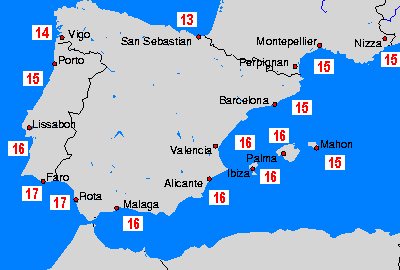 26ºC marcan las aguas mediterráneas desde Valencia hasta Almería, con zonas de 27ºC mar adentro enfrente de Alicante.