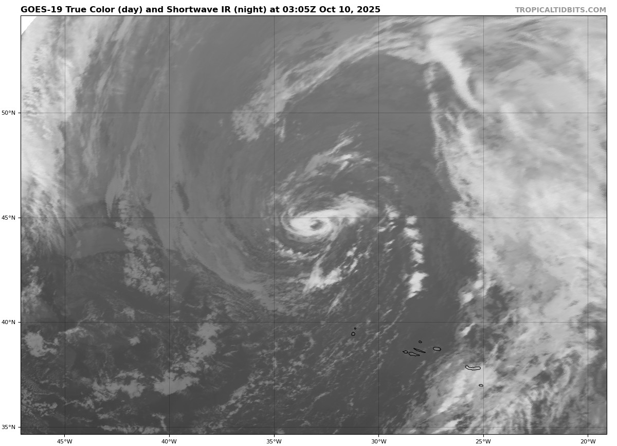 Pues por lo visto ha batido récord de formación más septentrional de un sistema subtropical Atlántico. Se ha formado en el paralelo 44,5º N, el anterior récord estaba en el 42º N o así en un sistema sin nombrar de 1958.